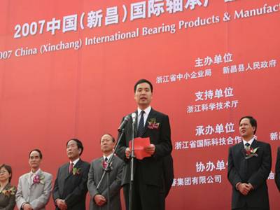 開幕式上,新昌縣委書記何加順致辭,簡要介紹了新昌的經(jīng)濟(jì)社會發(fā)展情況。他說,近年來,新昌的工業(yè)發(fā)展已形成鮮明的產(chǎn)業(yè)集聚特征,其中尤以軸承最為明顯,軸承產(chǎn)業(yè)在新昌工業(yè)中的比重達(dá)到22%。新昌已成為國內(nèi)最大的軸承套圈生產(chǎn)基地和出口配套基地,產(chǎn)量占全國市場的20%,產(chǎn)品遠(yuǎn)銷美國、日本、歐盟等國家和地區(qū);新昌的成品軸承門類齊全,軸承裝備制造業(yè)也有一定基礎(chǔ),軸承產(chǎn)業(yè)已成為新昌獨(dú)具特色的區(qū)域塊狀經(jīng)濟(jì)。