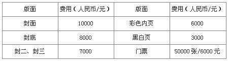標準展位 國內(nèi)企業(yè):3M×3M 5200人民幣(主通道兩側(cè)加價20%) 國外企業(yè):3M×3M 1800美元(主通道兩側(cè)加價20%) 標準展位配備: 三面展板、楣板、一張洽談桌、兩把折疊椅、兩只射燈、廢紙簍及5A 電源插座各一個。 室內(nèi)光地 國內(nèi)企業(yè):500元/平方米 (不少于36平方米,主通道兩側(cè)加價20%) 國外企業(yè) :180美元/平方米 (不少于36平方米,主通道兩側(cè)加價20%) 注:展臺特別裝修,特裝管理費由參展商自理 研討會及會刊廣告: