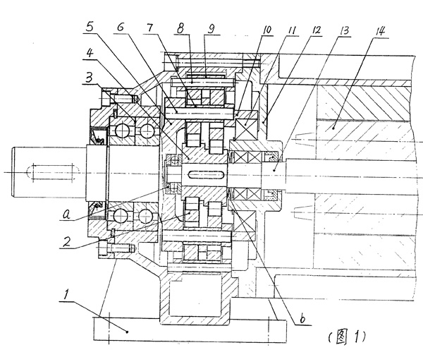 本發(fā)明擺線減速機(jī)涉及傳動(dòng)技術(shù)領(lǐng)域,是現(xiàn)代擺線減速機(jī)的重大改進(jìn)。其主要特征在于:(一)機(jī)座與針齒殼融為一體,或者針齒殼置于機(jī)座內(nèi)腔;(二)輸出機(jī)構(gòu)由輸出軸、柱銷及均載環(huán)組成,兩側(cè)由軸承支承,使擺線輪與偏心軸承處于兩軸承之間。本發(fā)明比之日本住友6000系列擺線減速機(jī)軸向尺寸縮短20~34%,外形縮。丁常矗,比之德SEW硬齒面減速機(jī):軸向尺寸縮短20~45%,重量減輕25~35%,更適宜與主機(jī)配套。