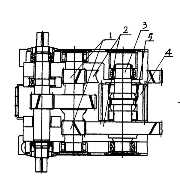 | 單邊雙傳動(dòng)減速機(jī),其特征在于:該減速機(jī)為三級(jí)齒輪傳動(dòng),其特征在于:第一級(jí)為斜齒輪傳動(dòng);第二級(jí)為兩端不相等螺旋角人字齒軸(1)驅(qū)動(dòng)兩件第二級(jí)大齒輪(2);第三級(jí)的輸入端為第二級(jí)兩大齒輪(2)帶動(dòng)的兩件傳動(dòng)軸(3)與兩小件齒輪(4),兩件小齒輪(4)驅(qū)動(dòng)大齒圈(6)。 |