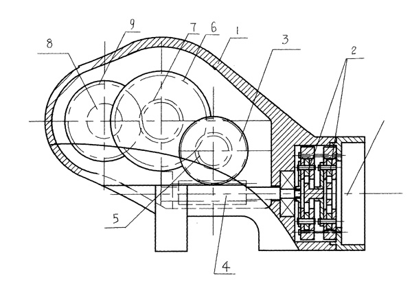 | 本實(shí)用新型提供的是一種緊湊型大減速比減速機(jī)。它包括殼體和安裝在殼體內(nèi)的減速機(jī)構(gòu),所述的減速機(jī)構(gòu)包括行星齒輪機(jī)構(gòu)、蝸輪蝸桿機(jī)構(gòu)和齒輪機(jī)構(gòu),行星齒輪機(jī)構(gòu)的輸出軸與蝸桿同軸,蝸輪與蝸桿相配合,蝸輪上安裝有同軸齒輪、且該齒輪與大齒輪相嚙合,與大齒輪同軸的齒輪與輸出軸上固定的齒輪嚙合。本實(shí)用新型通過行星齒輪機(jī)構(gòu)、蝸輪蝸桿機(jī)構(gòu)和齒輪機(jī)構(gòu)相互配合,達(dá)到減速目的,通過這種組合,達(dá)到較大的減速比,使減速機(jī)的整體體積小,結(jié)構(gòu)緊湊、簡(jiǎn)單,從而降低制作成本,且使減速機(jī)的安裝使用更方便。 |