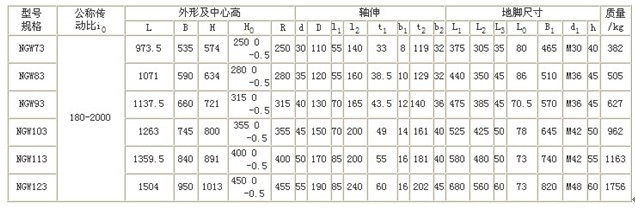 NGW型行星齒輪減速機(jī)主要構(gòu)建有太陽(yáng)輪、行星輪、內(nèi)齒圈、行星架。 具有一下特點(diǎn): 1、體積小、重量輕、在相同情況下,比普通漸開線圓柱齒輪減速機(jī)重量輕1/2以上,體積小1/2~1/3。 2、傳動(dòng)效率高:?jiǎn)渭?jí)行星齒輪減速機(jī)達(dá)97%~98%;兩級(jí)行星齒輪減速機(jī)達(dá)94%~96%;三級(jí)行星齒輪減速機(jī)91%~94%。 3、傳動(dòng)功率范圍大:可以從小于1KW至1300KW,甚至更大。 4、傳動(dòng)范圍大:i=2.8~2000 5、適應(yīng)性強(qiáng)且耐用。 特點(diǎn)和適用范圍 結(jié)構(gòu)特點(diǎn) NGW型行星齒輪減速機(jī)主要構(gòu)建有太陽(yáng)輪、行星輪、內(nèi)齒圈、行星架。 為了使三個(gè)行星輪的載荷均勻分配,采用了齒式浮動(dòng)機(jī)構(gòu),即太陽(yáng)輪或行星架浮動(dòng),或者太陽(yáng)輪、行星架兩者同時(shí)浮動(dòng)。減速機(jī)中的齒輪為直齒漸開線圓柱齒輪。具有一下特點(diǎn): 1、體積小、重量輕、在相同情況下,比普通漸開線圓柱齒輪減速機(jī)重量輕1/2以上,體積小1/2~1/3。 2、傳動(dòng)效率高:?jiǎn)渭?jí)行星齒輪減速機(jī)達(dá)97%~98%;兩級(jí)行星齒輪減速機(jī)達(dá)94%~96%;三級(jí)行星齒輪減速機(jī)91%~94%。 3、傳動(dòng)功率范圍大:可以從小于1KW至1300KW,甚至更大。 4、傳動(dòng)范圍大:i=2.8~2000 5、適應(yīng)性強(qiáng)且耐用。主要零件均采用優(yōu)質(zhì)合金鋼經(jīng)滲碳淬火或氮化處理,行星齒輪減速機(jī)運(yùn)轉(zhuǎn)平穩(wěn)、噪音小、使用受命10以上。 6、用途和適用條件 NGW型行星齒輪減速器有單級(jí)(NGW11—NGW121),兩級(jí)(NGW42—NGW122)三級(jí) (NGW73—NGW123)三個(gè)臥式系列。主要用于冶金、礦山、起重運(yùn)輸機(jī)械設(shè)備,也可用于其它類似工礦條件下作動(dòng)力傳動(dòng)。 高速軸最高速不超過(guò)1500r/min 齒輪圓周速度不超過(guò)10m/s; 工作環(huán)境溫度為-40℃—45℃; 可正反兩向運(yùn)轉(zhuǎn)。 NGW型行星齒輪減速器的一個(gè)重要特點(diǎn)是,內(nèi)嚙合于外嚙合之間共用一個(gè)行星輪,NGW就是由“內(nèi)、公、外”三字的漢語(yǔ)拼音的第一個(gè)字母組成的。