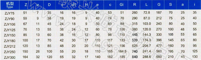 此系列包括:ZJY75,ZJY90,ZJY106,ZJY125,ZJY150,ZJY180,ZJY212,ZJY250,ZJY300