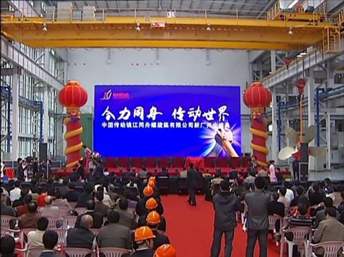 4 月23 日,鎮(zhèn)江同舟螺旋槳有限公司新廠開業(yè)典禮在鎮(zhèn)江新區(qū)舉行,標志著中國傳動在船用產品格局上形成了鎮(zhèn)江和南京兩大生產基地。鎮(zhèn)江基地主要從事各種船用螺旋槳和銅合金鑄件的設計制造;南京江寧基地主要生產各類船用齒輪箱、軸系、可調距螺旋槳、側推、全回轉、舵系及甲板機械。鎮(zhèn)江市市長劉捍東、中國傳動董事會主席胡曰明共同為公司揭牌。來自海內外320 多家船舶制造、航運公司及設計院所500余人參加開業(yè)慶典。
