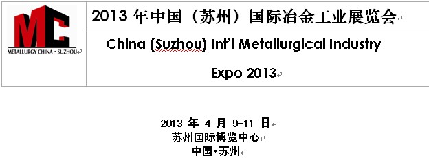 經(jīng)國家有關(guān)部門批準,由中國鋼鐵工業(yè)協(xié)會,中國貿(mào)促會冶金行業(yè)分會,冶金工業(yè)國際交流合作中心共同主辦的“2013年中國(蘇州)國際冶金工業(yè)展覽會”將于2013年4月9-11日在蘇州國際博覽中心舉辦,兩年一屆。