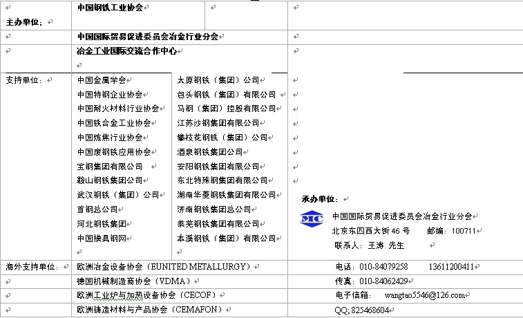 5.向中國大陸、港澳臺地區(qū)以及東亞、東南亞地區(qū)國家的冶金企業(yè)、相關(guān)企業(yè)以及貿(mào)易公司寄送展覽會參觀券。同時通過當?shù)貐f(xié)會或代理,向印度、俄羅斯、中東地區(qū)及歐美等地區(qū)寄送參觀券。