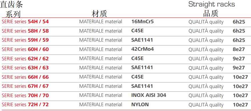 Gambini可使用不同類型的原材料生產(chǎn)高精度的直齒條和斜齒條。我們生產(chǎn)的齒條模數(shù)范圍為0.5到30,品質等級范圍為5到10。品質等級為5的齒條最大長度為1000mm,如果品質等級為6,可生產(chǎn)的單件長度可達2000mm.