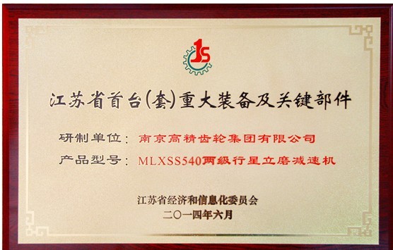 近日,南高齒齒輪集團子公司——南京高精齒輪集團有限公司獲得由江蘇省經信委頒發(fā)的認定證書,公司自主研制的“MLXSS540兩級行星立磨減速機”被認定為江蘇省首臺(套)重大裝備。江蘇省首臺(套)重大裝備及關鍵部件的認定和應用示范,旨在鼓勵發(fā)展高端制造領域自主研制的高新技術裝備、大型成套裝備及其關鍵部件。