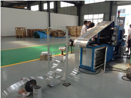 按120片/分鐘計算,蒸發(fā)器按每套55片翅片計算:正常完成產品時間是56秒。如果按60秒計算,一次生產為2套蒸發(fā)器,即一分鐘生產2套,一個小時生產120套。一天如果按8小時工作時間計算:8小時 X 60秒X 2套=960套/8小時。(只需1人操作)。