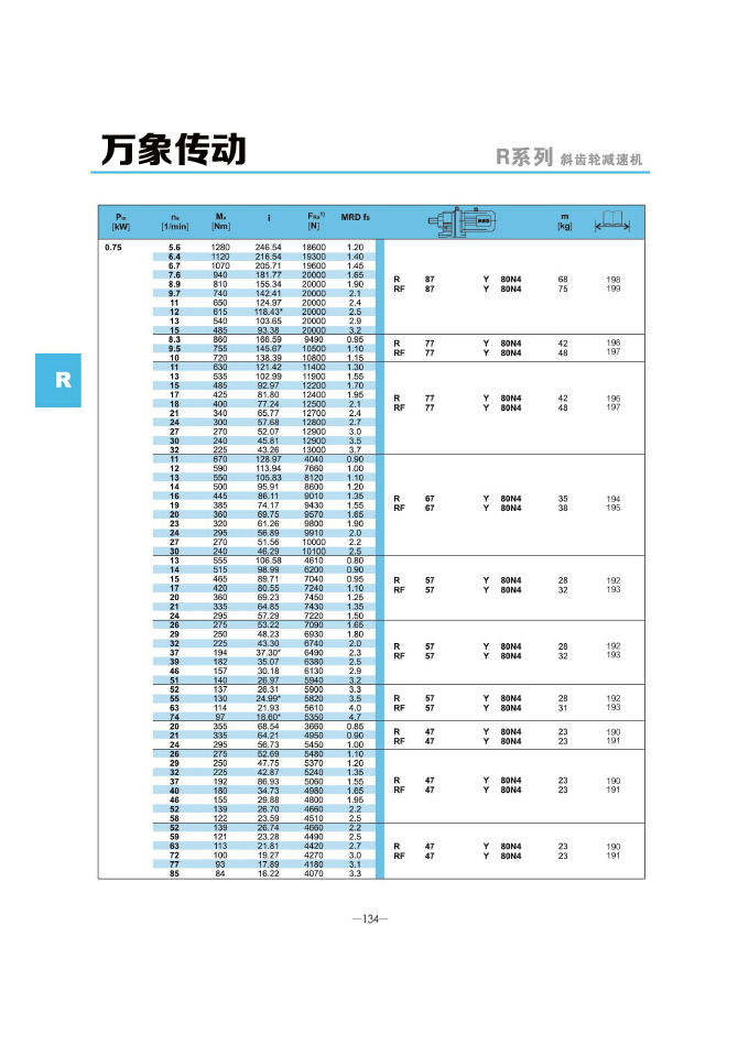 r系列減速機技術參數: