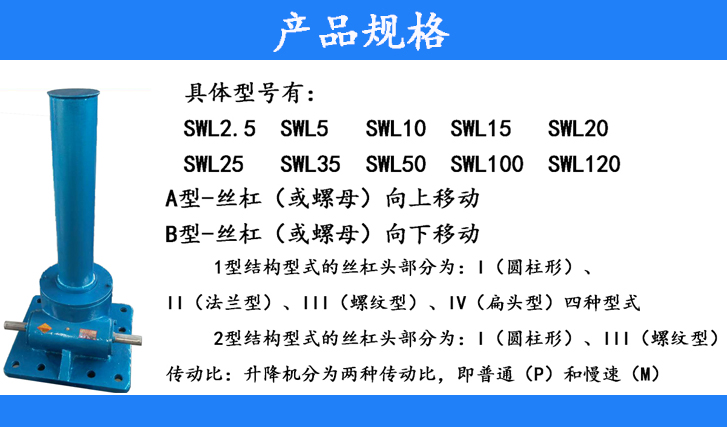 承載能力2.5—120T。具有結(jié)構(gòu)緊湊、積小、重量輕、動(dòng)力源廣泛、無噪音、安裝方便、使用靈活、功能多、配套形式多、可靠性高、使用壽命長(zhǎng)許多優(yōu)點(diǎn)。具有提升、降落、推進(jìn)、翻轉(zhuǎn)等多種功能,可以單臺(tái)或組合使用,能按一定程序準(zhǔn)確地控制調(diào)整升或推進(jìn)的高度,可以用電動(dòng)機(jī)或其它動(dòng)力直接帶動(dòng),也可以手動(dòng)。最高輸入轉(zhuǎn)速1500r/min,最大提升速2.7m/min。有不同的結(jié)構(gòu)型式和裝配方式,提升高度按用戶的要求制造。該裝置可以自鎖。
