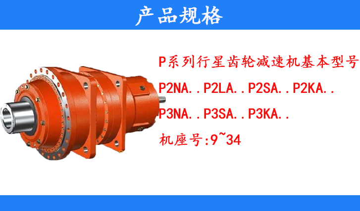 4、P系列產(chǎn)品有9-34型規(guī)格,行星傳動(dòng)級數(shù)有2級和3級。速比為25~4000