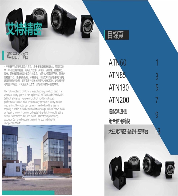 中空旋轉(zhuǎn)平臺(tái)可取代DD馬達(dá)與分割器,在兩者之間取得平衡,重復(fù)定位精度≦5 秒, 馬達(dá)輕松配制,承載穩(wěn)重,可搭配AC伺服馬達(dá)或步進(jìn)馬達(dá)做任意角度分割,既可滿足分割器無(wú)法達(dá)到之?dāng)?shù)位控制,定位精度又可媲美DD馬達(dá)。可大幅度降低成本,為您帶來(lái)意想不到的效果!中空軸旋轉(zhuǎn)平臺(tái)是行星伺服減速機(jī)的中一個(gè)系列。