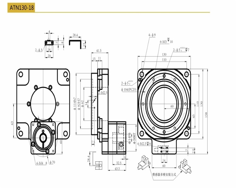 中空旋轉(zhuǎn)平臺(tái)通過(guò)電機(jī)驅(qū)動(dòng),實(shí)現(xiàn)角度調(diào)整自動(dòng)化。精加工蝸輪蝸桿或齒輪傳動(dòng),角度調(diào)整無(wú)極限。精密軸系設(shè)計(jì),保證精密高,承載大;步進(jìn)電機(jī)與傳動(dòng)件通過(guò)進(jìn)口高品質(zhì)彈性聯(lián)軸器連接,排除空間和加工形位誤差。旋轉(zhuǎn)臺(tái)面外圈刻度直觀;標(biāo)準(zhǔn)接口,方便信號(hào)傳輸;手動(dòng)手輪配置,電控手動(dòng)均可。可選裝伺服電機(jī)或步進(jìn)電機(jī)。