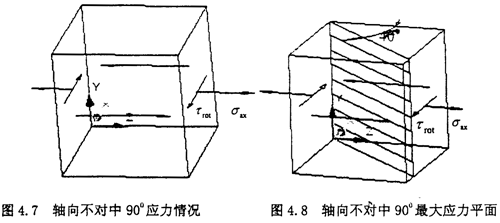 根據(jù)聯(lián)軸器破壞時的橡膠圓環(huán)的裂紋方向和角度,可以知道裂紋有一個400的斜角,也就是說引起破壞的應(yīng)力平面具有一定的角度。首先假設(shè)破壞僅僅是源于軸向不對中應(yīng)起的,下面對具體的位置進(jìn)行討論。