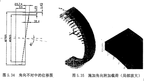 綜合不對中的模擬過程基本上類似軸向不對中,不同的是這時的位移變成了既有軸向的位移,還有徑向位移以及角向位移。其位移圖如圖5.42所示。