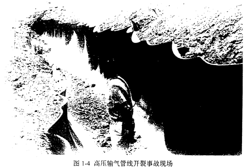 圖1-4為高壓輸氣管線開裂事故現(xiàn)場