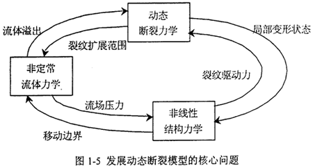裂紋動態(tài)擴展與止裂問題涉及的是流體/結構/斷裂相互作用又相互影響的過程,如圖1-5所示。流體/結構/斷裂耦合作用下的動態(tài)裂紋擴展包括計算結構力學、流體力學和斷裂力學等相關學科的綜合: