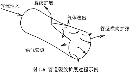 由于缺陷持續(xù)擴展而導致管線開裂是高壓輸氣管線區(qū)別于輸送液體(如石油)管線的特有破壞形式。高壓輸氣管線上可能發(fā)生長距離的斷裂擴展,而輸送液態(tài)物質(zhì)的管線上一般是發(fā)生泄漏或僅開裂數(shù)英尺。這種不同斷裂特征的原因在于氣體和液體具有不同的減壓特性。