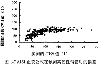 隨著管線輸送技術的發(fā)展,高壓力,高韌性鋼管逐漸投入使用。對于高韌性材料和具有上臺能(Rising-shelf)的材料,在引用的圖1-7中,基于標準夏比沖擊韌性的公式在實驗驗證過程中可靠性不理想。B.N.Leis對此提出了修正算法,但仍未很好地解決這個問題,并且失去了原有的物理意義。