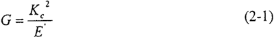 在斷裂力學中,定義引起裂紋產(chǎn)生單位長度的擴展所需要的能量為裂紋驅(qū)動力G。在平面問題中,G與應力強度因子Kc的關系可以表達為: