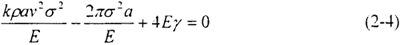 將單位面積的表面能γ用表示為臨界裂紋長度ac的形式,經(jīng)過Berry等人的修正,得到裂紋速度的表達式: