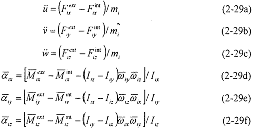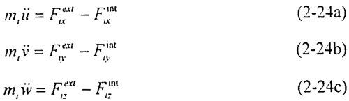 其中i代表節(jié)點號,mi為節(jié)點質(zhì)量,,為平動加速度,為外力,為變形引起的內(nèi)力(其中j=1,2,3,分別表示三個坐標軸方向x,y,z)。