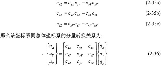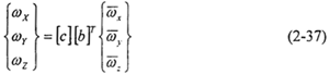 將上面的轉(zhuǎn)換矩陣定義為[c],則邊界條件中的平動速度可按(2-36)式轉(zhuǎn)化為局部坐標中的分量,轉(zhuǎn)動角速度按下式定義: