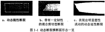 在管道用鋼韌性性能大幅度上升的背景下,20世紀60年代,延性失穩(wěn)斷裂事故首次在輸氣管線上出現(xiàn)。動態(tài)延性斷裂(DDF)在宏觀剪切面上擴展,與管道表面呈45度傾斜角,有很大的剪切唇,如圖3-lb和圖3-1c所示。雖然這種斷裂的環(huán)境溫度高于鋼材的韌脆轉化溫度,但由于鋼材的韌性相對于強度較低,還是使動態(tài)斷裂擴展先于顯著的塑性應變而發(fā)生。