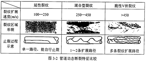 這種說法的依據(jù)是:對于前一種情況,從裂源處開始,減壓波前沿的移動速度比斷裂擴展速度更快,使得裂紋尖端的管壁應力因減壓波的通過而不斷減小,并最終降至止裂應力水平以下而使裂紋止裂;反之裂紋尖端的壓力不發(fā)生變化,斷裂將持續(xù)擴展,因為裂紋尖端的動態(tài)襲紋驅動力不會減小。