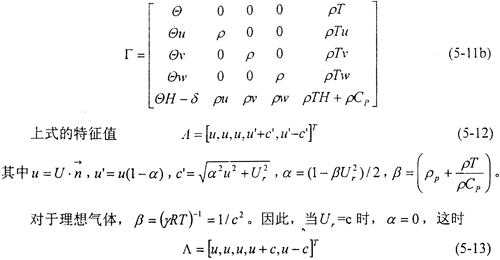 式中P為密度,U=u+v+w表示速度,E為總能,,分別為沿x,y,z方向的單位矢量。為粘性應(yīng)力項,是熱通量。