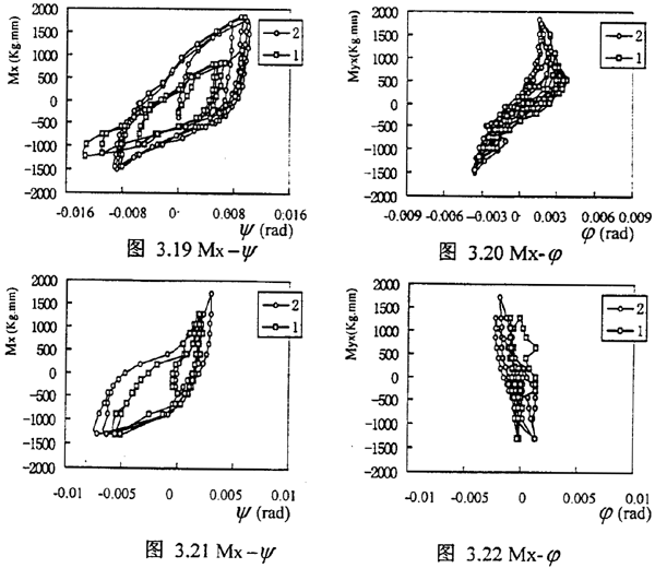 得到比較一致的結(jié)果,在齒輪聯(lián)軸器內(nèi)外齒面潤(rùn)滑條件不充分時(shí),齒面間磨擦可以看作是干磨擦;同時(shí)傳遞扭矩的增加,曲線的斜率、(即剛度有所增加)這各和理論計(jì)算結(jié)果想似(如圖3.11與3.19、3.21);并且隨著T的增加,遲滯曲線所圍的面積也隨之增大,磨擦力的影響也越顯著,這與圖3.11相同;從3.20、3.22圖中可以看出Mx方向的力矩,使內(nèi)外齒輪在ψ方向產(chǎn)生位移,這說明ψ-