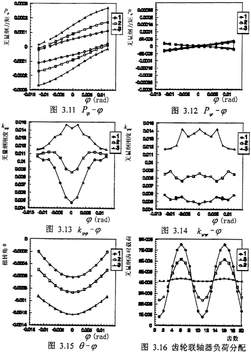 的增加,使得齒對(duì)彈簧到齒輪中心的力臂增加,使Kφφ有增加的趨勢(shì),兩方面作用的結(jié)果使得