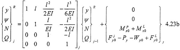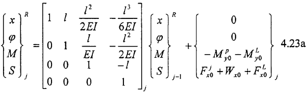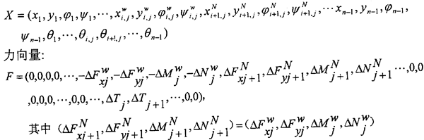 為總剛度陣,乃是因為式(4.20)還不是彎扭耦合振動方程的最終形式。這是因為1):式(4.20)右端含有未知力ΔFxjk,ΔFyjk,ΔMjk,ΔNjk,ΔTj,(k=w,N),方程組中未知量個數(shù)多于方程個數(shù);2):ΔFxjk,ΔFyjk,ΔMjk,ΔNjk,ΔTj,(k=w,N)是本征的。必須解決上述這兩個問題,才能得到彎扭耦合振動方程。因而我們還需要尋求一種關系,通過這種關系,解決上述兩個問題,使得各轉子的彎扭振動及轉子間的彎扭振動耦合起來,并使彎扭耦合振動的方程組有定解,即最終使(4.20)式化為如下標準形式
