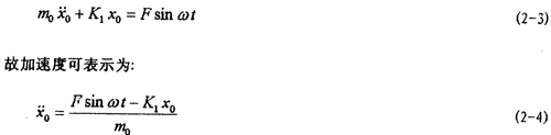 和位移,此時(shí),將D350電動(dòng)振動(dòng)臺(tái)考慮為一個(gè)單自由系統(tǒng),運(yùn)動(dòng)微分方程為(由于振動(dòng)臺(tái)動(dòng)圈阻尼一般較小,故不考慮C1的作用):