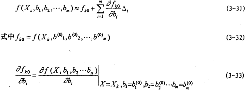 已知2是關(guān)于自變量X=[x1,x2,…,xp]T和待定參數(shù)B=[b1,b2,…,bm]T的形式已知函數(shù)(3-14)式,簡寫成: