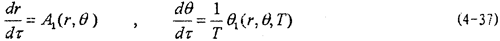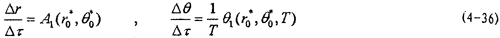 這就是對(duì)應(yīng)于(4-2)式的頻閃差分方程,即(4-2)式在Poicare平面上以T為周期的點(diǎn)變換方程。如ε充分小,則可令△τ=dτ,△r=dr,△θ=dθ,此外,(4-36)中的