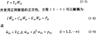 經(jīng)正則坐標(biāo)變換,雖然得到互不耦合的線性微分方程組(5-9),但是(5-9)式仍然不能像單自由度振動(dòng)系統(tǒng)那樣求解,因?yàn)椋?-9)式中的激勵(lì)力包含未知的振動(dòng)位移yb和振動(dòng)速度