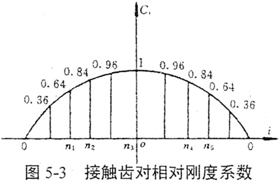 式中i為接觸齒對(duì)號(hào),其各接觸齒對(duì)所對(duì)應(yīng)的相對(duì)剛度系數(shù)如圖5-3所示。