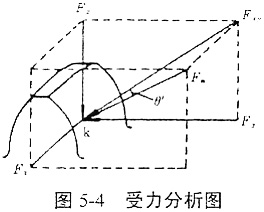φ2b——第i對(duì)齒基圓上的點(diǎn)與靜參考系間所夾的圓心角。其接觸線上任意點(diǎn)k處的受力狀態(tài)如圖5-4所示。
