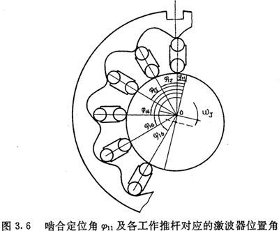這樣,一旦最小激波器位置角φ11被確定,各工作推桿所對應(yīng)的激波器位置角φ1i便隨之被確定下來,從而各嚙合點也被確定下來,稱最小激波器位置角φ11為嚙合點定位角,簡稱嚙合定位角。嚙合定位角φ11的取值范圍是: