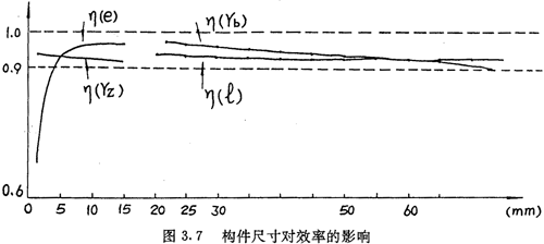為了判斷推桿減速器構(gòu)件尺寸對其效率的影響,對3TWY7.5-12推桿減速器,選用同一組摩擦系數(shù),而改變某一基本構(gòu)件尺寸,并假定傳動圈尺寸隨之改變以確保受力交點Q落在傳動圈所在環(huán)內(nèi),計算其嚙合效率,結(jié)果如圖3.7所示。