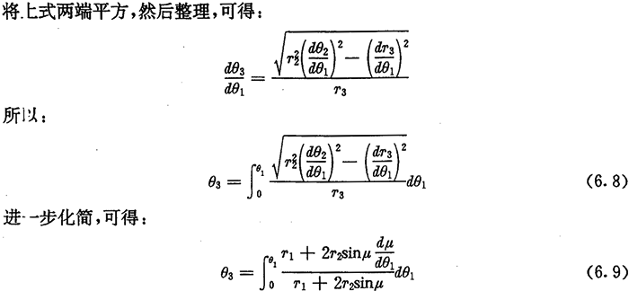 為了得到機(jī)構(gòu)不發(fā)生運(yùn)動干涉時的最大λ值,將(6.42)式中的小于號換成等號,并將λ代入,對于橢圓形太陽輪,得到下面等式: