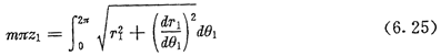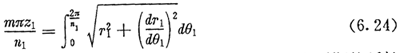 由于每個周期的弧長都是相等的,太陽輪節(jié)曲線的總長等于n1個周期的弧長之和,用n1乘以(6.24)兩邊,可得等分條件的另一種表達(dá)形式: