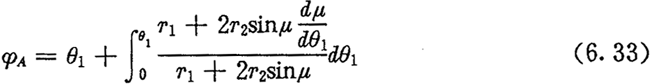 根據(jù)(6.33)式,可由任給的φA確定出太陽輪起點S1至1號行星輪與太陽輪節(jié)曲線的接觸點M1所來的中心角θ1,然后代入(6.30)式,可得l號行星輪中心O2與內(nèi)齒圈初始件S3所夾的中心角φ3(φA)。用φB代替(6.33)式中的φA,將解得的θ1值代入(6.30)式,便可得到第2號行星輪中心與內(nèi)齒圈S3點所夾的中心角φ3(φB)。兩行星輪之間的中心角ψ為: