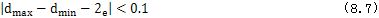 上式中的xN,yN是由式(7.9)表示的齒廓上的點的坐標值,當φ1=0時,點(xN,yN)對應齒頂,這時d有最小值偏dmin,當φ1=φlm時,點(xN,yN)對應齒根,這時d偏,齒全高等于己的最大與最小值之差。齒全高限制條件可寫為: