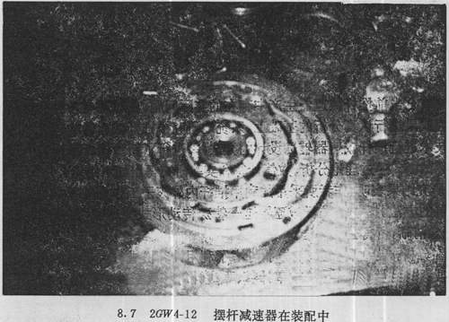 擺桿減速器的其它零部件都是在解放軍7435工廠進行加工的,并在該廠完成裝配。圖8.7為2GW4-12擺桿減速器正在裝配之中,圖8.8是該機外型。裝配后,運轉(zhuǎn)2個小時左右,機器噪音小,運轉(zhuǎn)平穩(wěn),工作狀態(tài)良好。