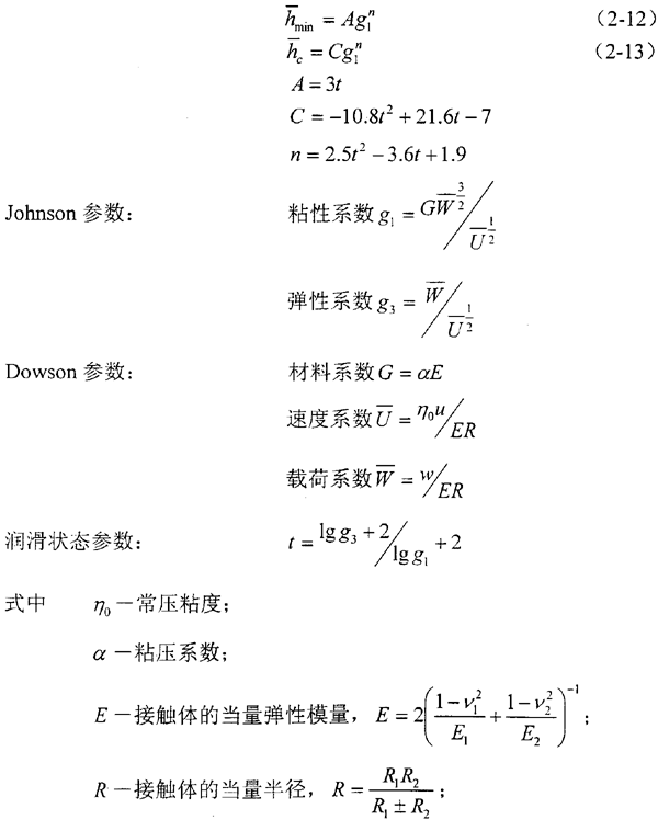 根據(jù)計(jì)算流體動(dòng)力潤(rùn)滑膜厚的張鵬順統(tǒng)一公式,最小膜厚