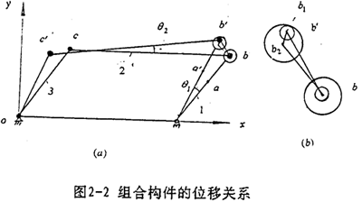 由于構(gòu)件與構(gòu)件之間存在運動副間隙,因此組合構(gòu)件上任意兩點之間的位移關(guān)系,可能包括有間隙位移在內(nèi)。