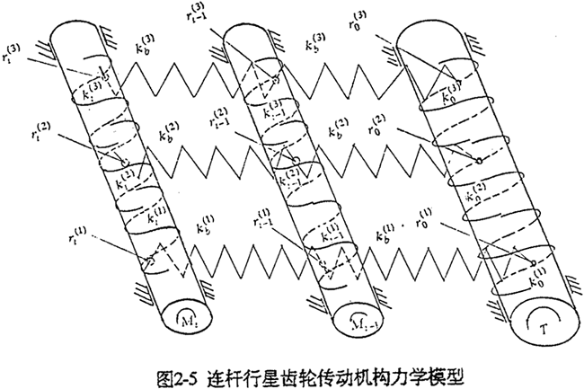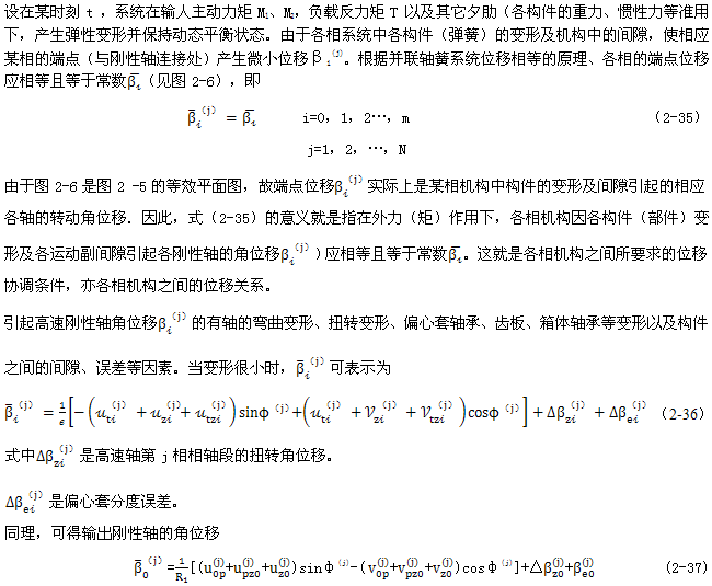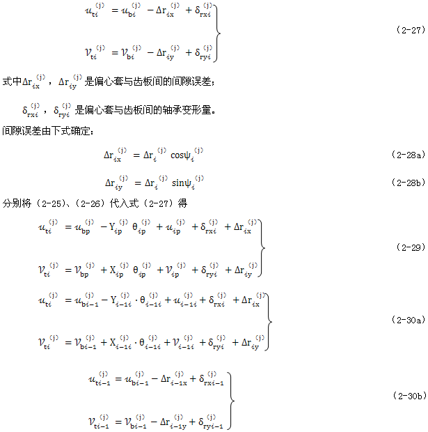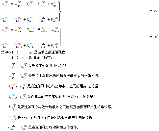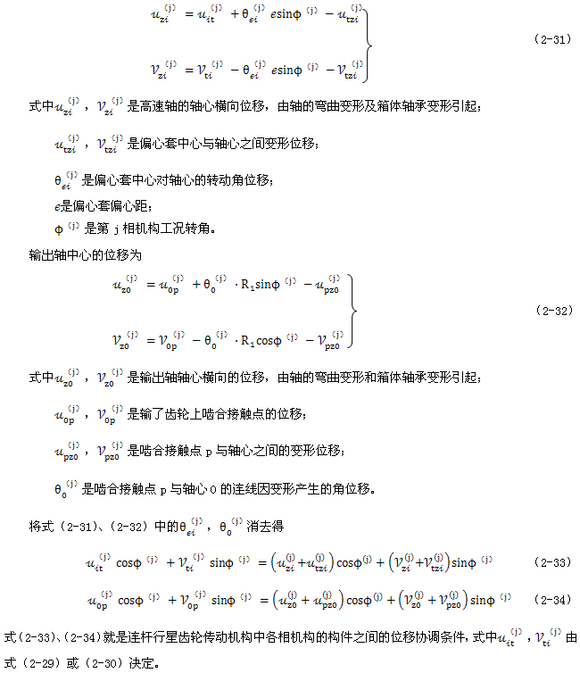 式(2-40)就是少齒差連桿行星齒輪傳動初喲多齒接觸承載的位移協(xié)調(diào)條件。用于多相并列少齒差連桿行星齒輪傳動機構(gòu)時,由此消去C(j)后可列出Σni=1(Z(j)-1)個補充方程。